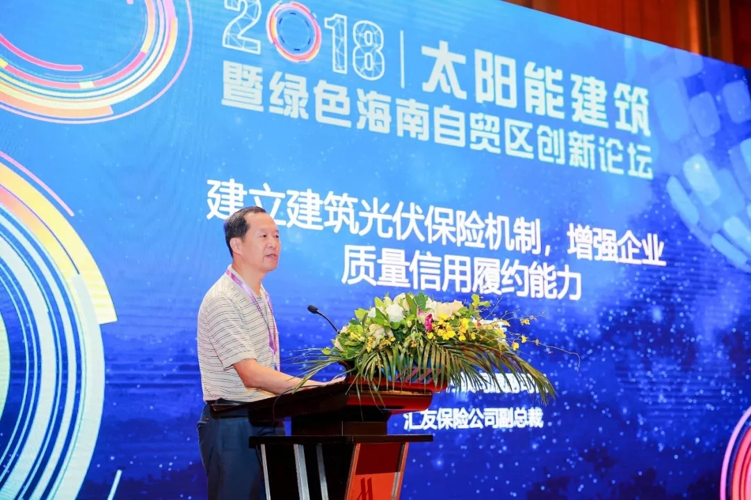 赵宏彦先生 原住建部村镇司副司长、汇友保险公司副总裁 以《建立建筑光伏保险机制,增强企业质量信用履约能力》为题发表主旨演讲。